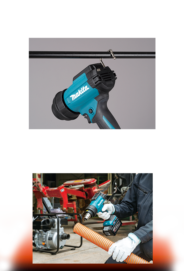 La pistola de calor inalámbrica XGT® 40Vmax ofrece un rendimiento comparable al de los modelos con cable, ideal para aplicaciones exigentes que requieren alta temperatura y gran caudal de aire. Con hasta 600 °C y 200 l/min, garantiza resultados rápidos y eficaces en trabajos como soldadura de láminas impermeables, retracción de tubos de alta resistencia o manipulación de cables de gran diámetro.
