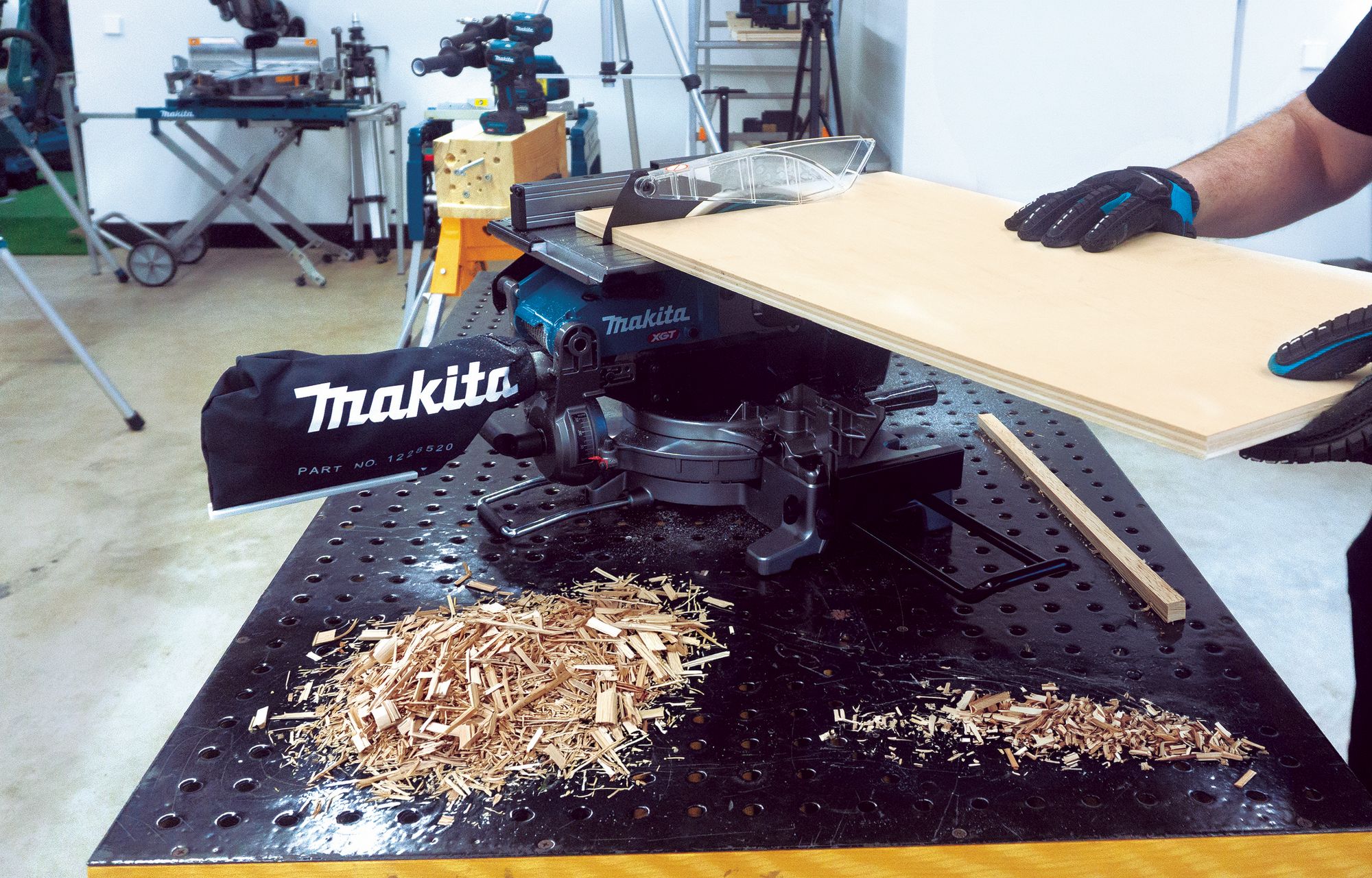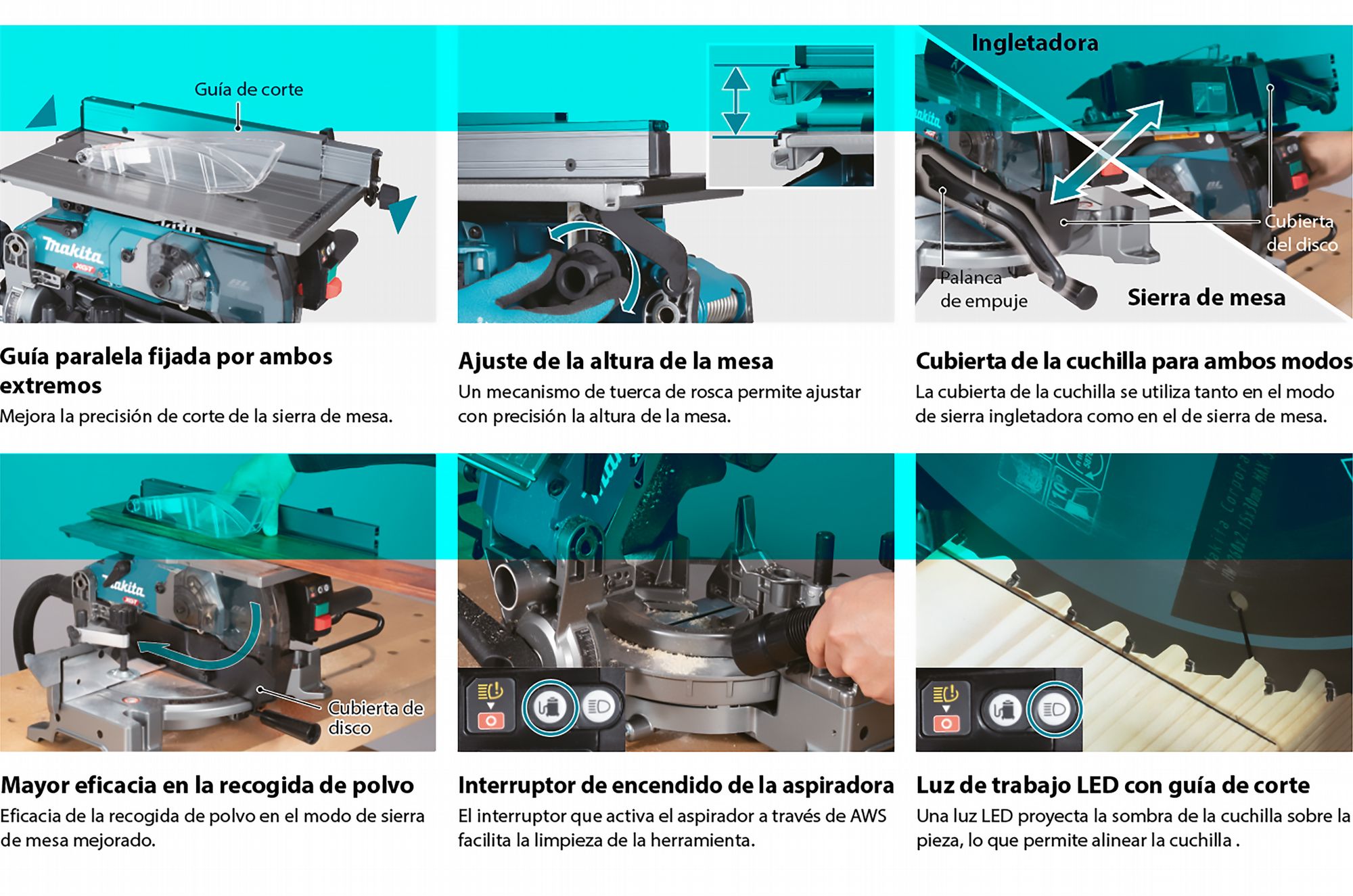 Cambia de modo ingletadora a sierra de mesa en cuestión de segundos. La misma batería, el mismo disco, la misma precisión. La obra no espera y tú tampoco.