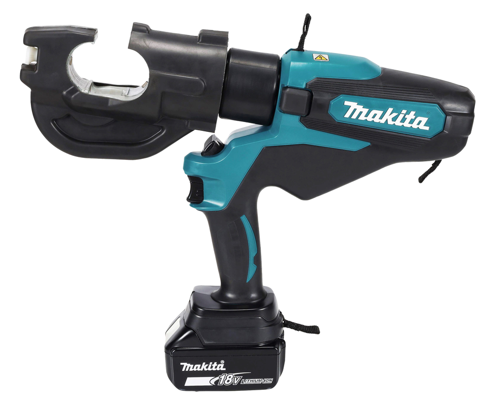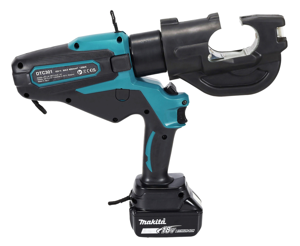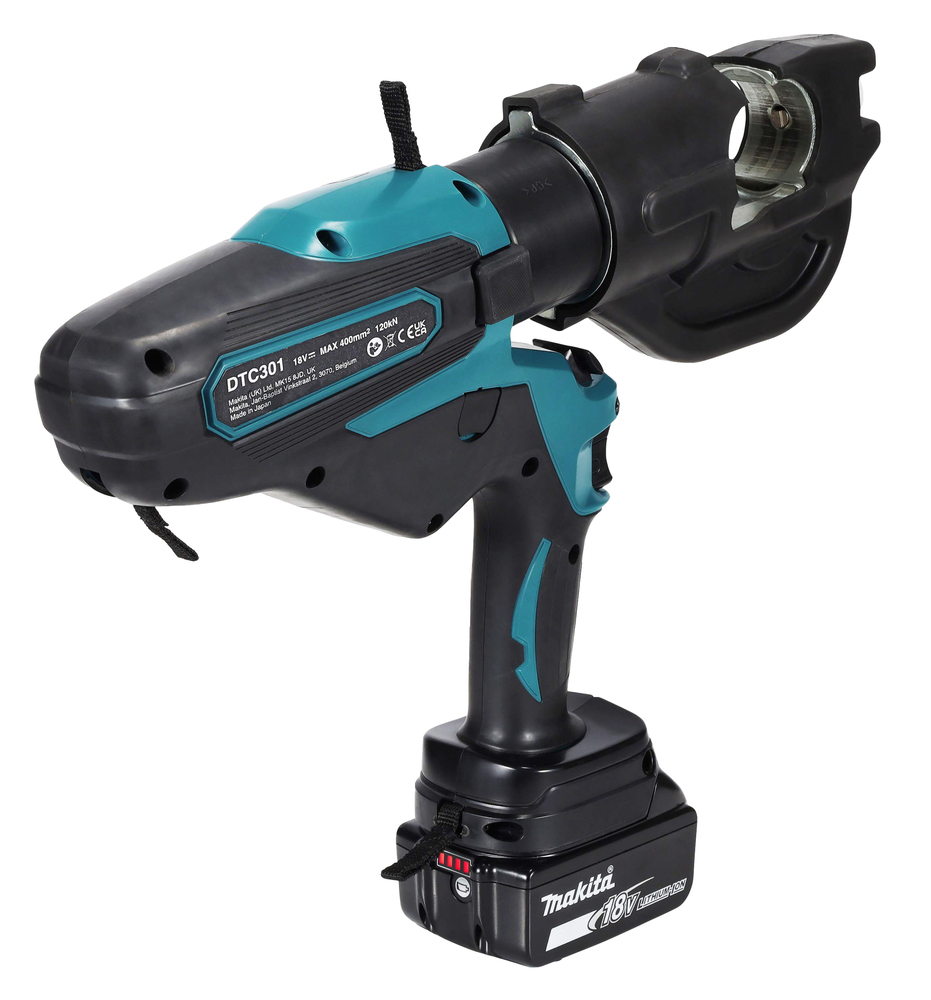Crimpadora DTC301 LXT® 18V con capacidad máxima de prensado de ø19,5 mm (300 mm²) tanto para cobre como para aluminio. Esta herramienta está diseñada para manejar incluso los cables eléctricos de mayor diámetro con facilidad. No incluye ni batería ni cargador.